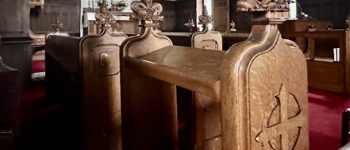 Communion, in both kinds, will be distributed at the rail in the chancel. Please notify an usher if you would prefer to receive communion in your pew.
